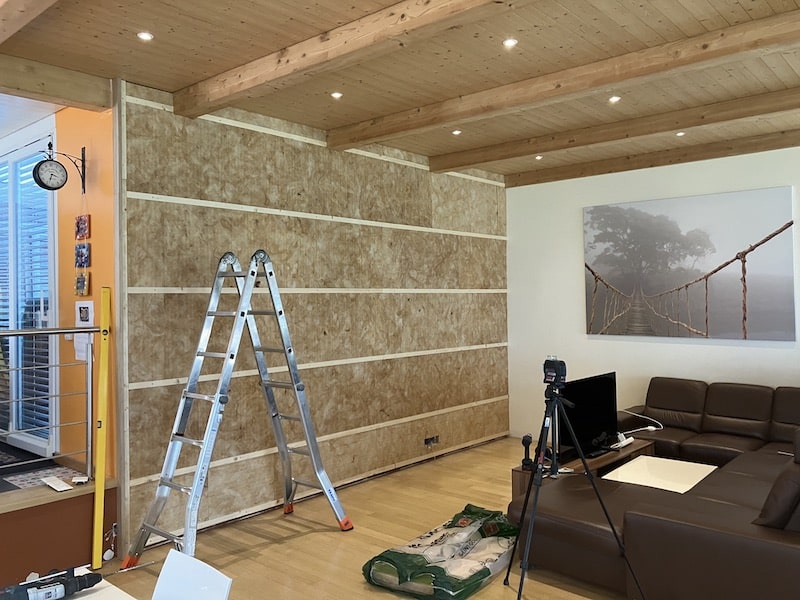 Pour maximiser l'efficacité acoustique des panneaux, nous les avons montés sur une structure en bois, avec de la laine de verre insérée entre les lattes.