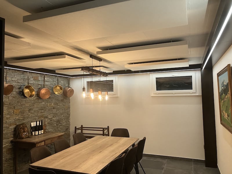 Désormais, ce carnotzet offre une atmosphère bien plus agréable, permettant à notre cliente et ses invités de passer des heures à échanger dans un confort sonore optimal.