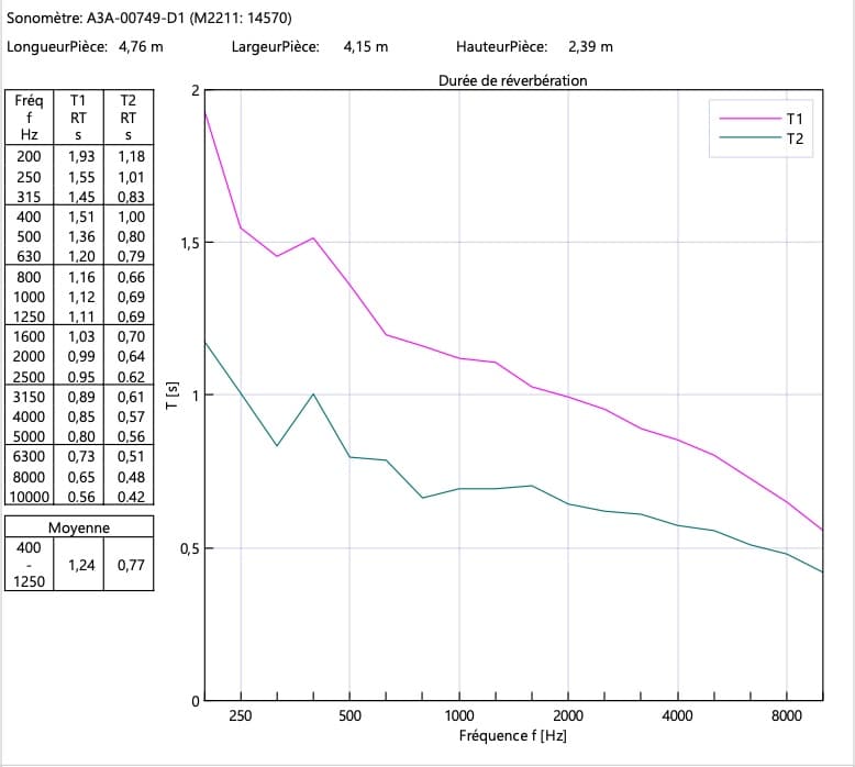 Grâce à notre nouvel outil de mesure du temps de réverbération des pièces, nous avons pu quantifier l’amélioration avant et après l’installation.