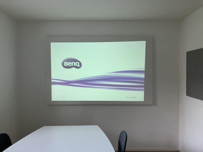 Pour la salle de réunion, un panneau mural grand format a été conçu pour remplir une double fonction : améliorer l’acoustique de la pièce et servir de support pour les projections.