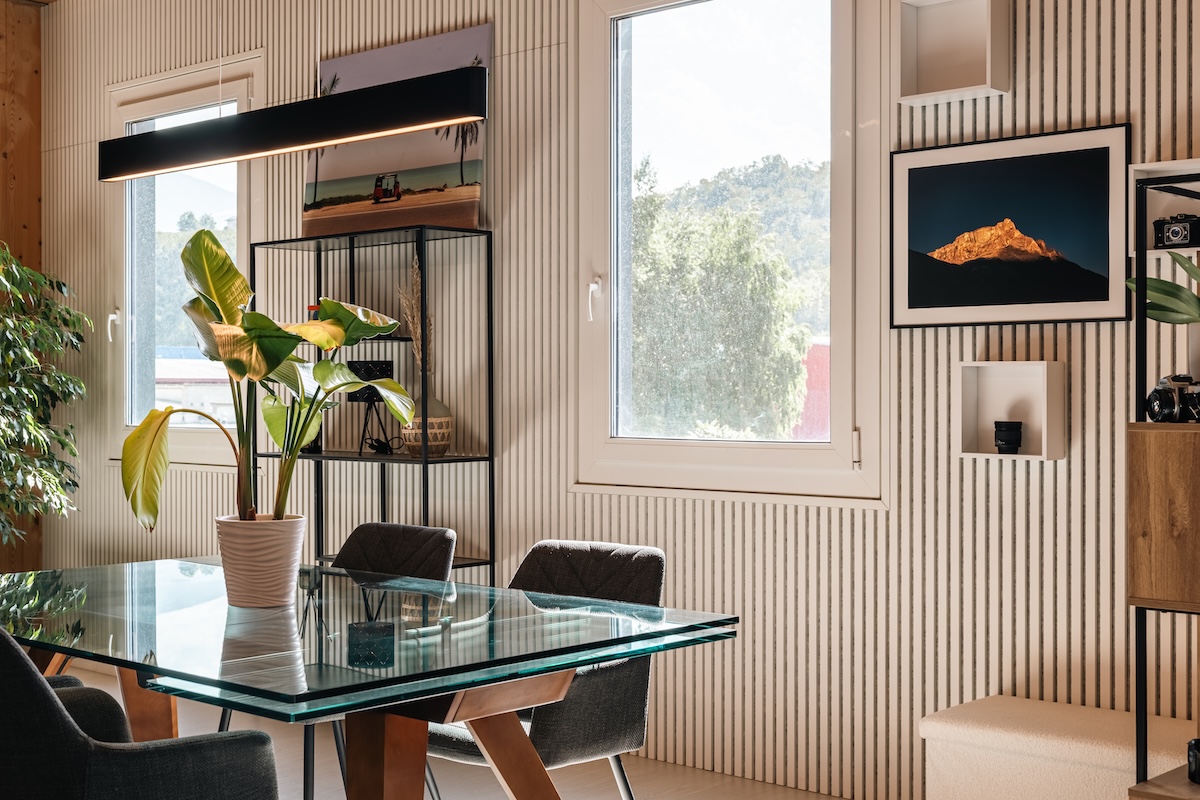 Dès le départ, leur idée était précise : revêtir deux murs complets avec des panneaux acoustiques à lamelles de bois ajourées de la marque WoodUpp.